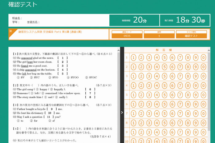 授業を受け終わったら、確認テストを受けます。